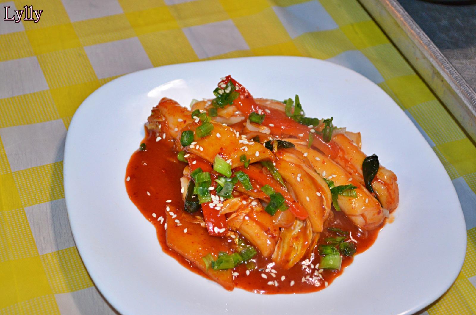 - Tteokbokki, considerat simbolul street food-ului coreean, gătit într-un sos dulce-picant pe bază de gochujang.