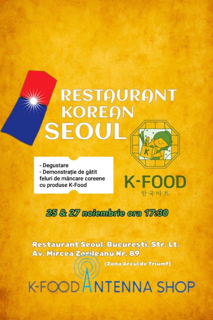 La finalul lunii noiembrie, Restaurant Seoul din București a găzduit două demonstrații culinare dedicate bucătăriei coreene, organizate în colaborare cu KFOOD România. Evenimentele, desfășurate pe 25 și 27 noiembrie, au reunit numeroși participanți interesați de gastronomia coreeană și de tehnicile specifice de preparare ale unora dintre cele mai apreciate rețete din Coreea de Sud.