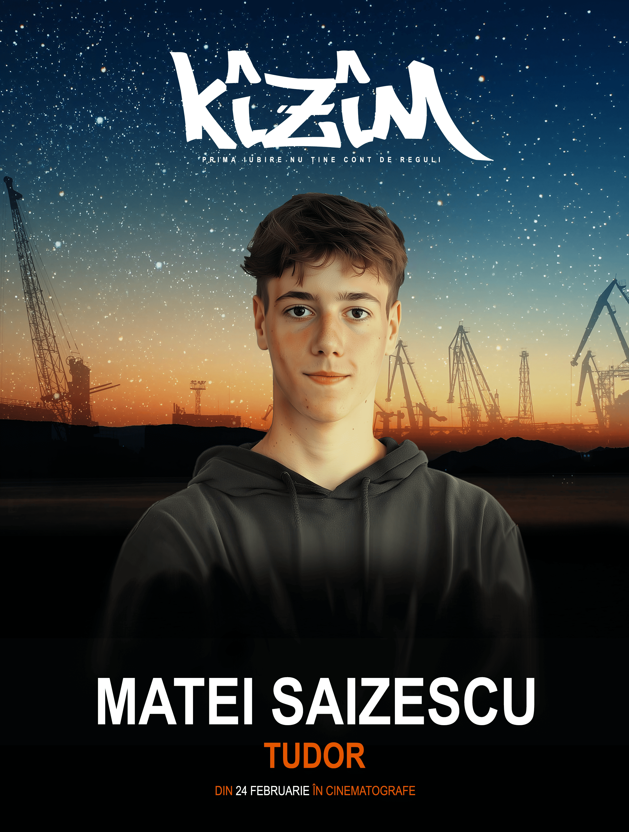 Matei Saizescu a crescut pe platourile de filmare, alături de părinții săi, a jucat în spectacole, filme, și își dorește o carieră în actorie. În KÎZÎM are primul său rol important, cel al unui adolescent cuminte și timid, ajuns într-o situație periculoasă.